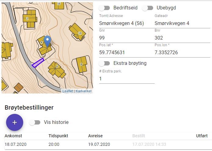 Brøyter ser alle brøytebestillinger på et interaktivt kart. Når brøyting er utført, kvitteres bestillingen ut, og hytteeier får umiddelbart melding om dette via SMS.