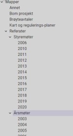 Foreningen v/styret kan fritt definere de mappene som er hensiktmessig for å holde en god og langsiktig struktur på relevante dokumenter.